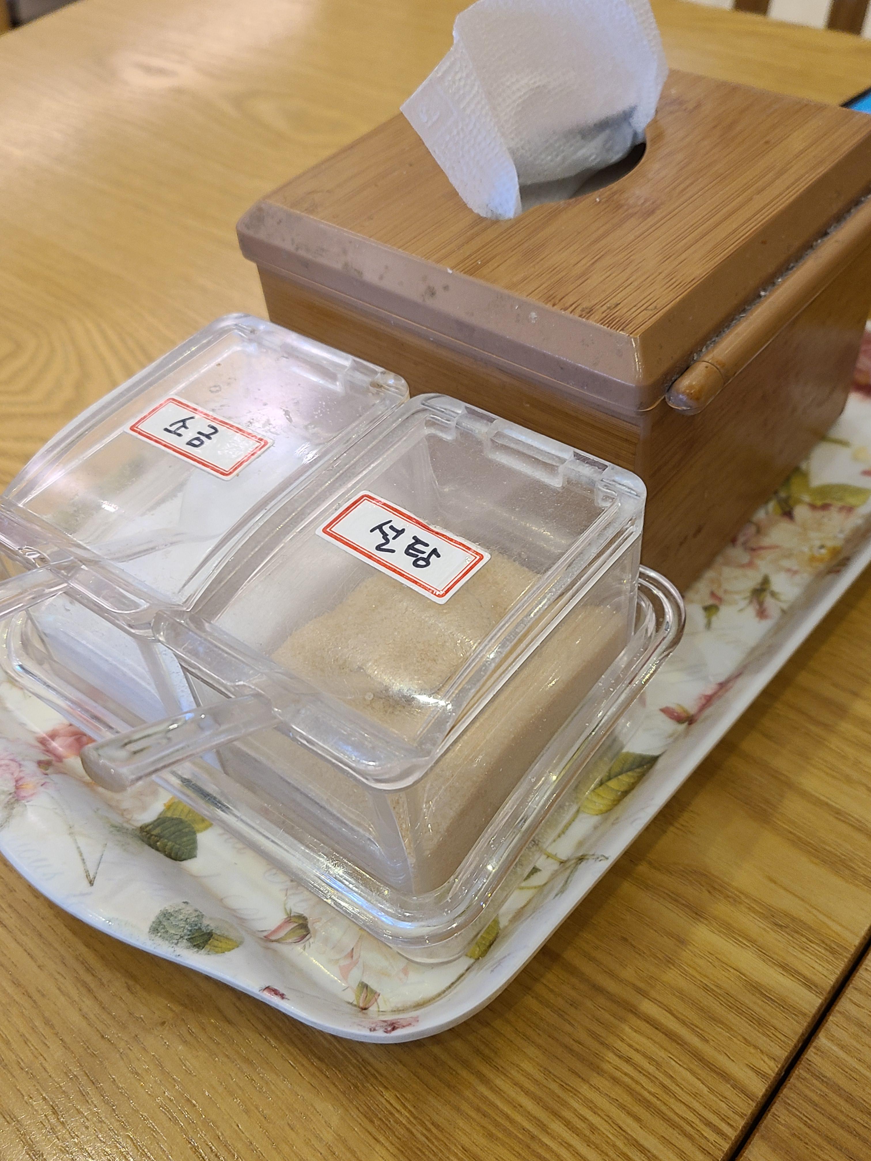 각 자리에는 취향에 따라 먹을 수 있게 소금과 설탕이 있었어요.